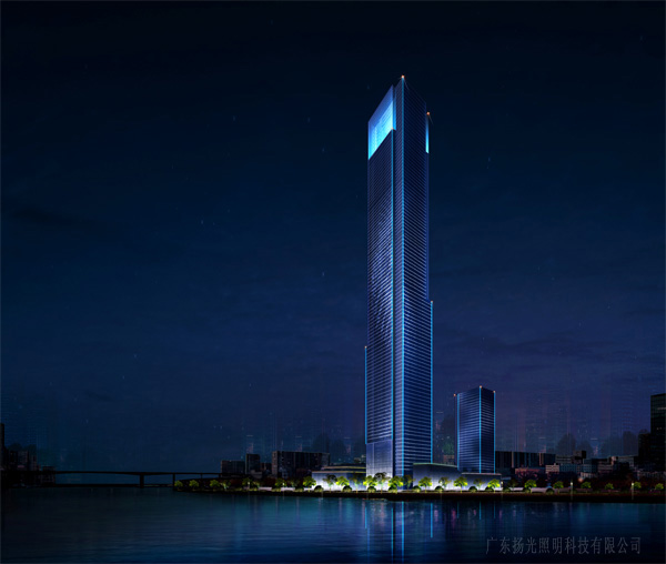 通過(guò)對(duì)建筑的夜間景觀設(shè)計(jì),以簡(jiǎn)潔的手法體現(xiàn)建筑的挺拔、自信和品位。依托周?chē)h(huán)境及地域特征,燈光塑造地標(biāo)氣質(zhì),提升智慧建筑的內(nèi)涵。