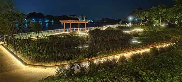 對沿湖景觀進行照明,形成統(tǒng)一延伸的湖岸線。在親水平臺外,設(shè)置親水性的發(fā)光燈具,增添一定的游玩觀賞性和趣味性,營造優(yōu)美,和諧的新鄉(xiāng)村環(huán)境。
