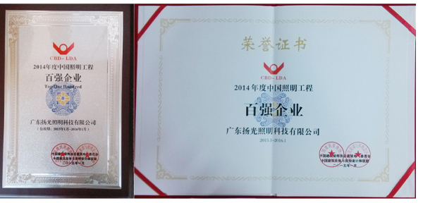 1月12日下午,由中國(guó)建筑裝飾協(xié)會(huì)建筑電氣委員會(huì)、《照明周刊》,中國(guó)建筑裝飾與照明設(shè)計(jì)師聯(lián)盟主辦的2014年度“中國(guó)照明工程公司百?gòu)?qiáng)企業(yè)”頒獎(jiǎng)典禮及“第五屆中國(guó)LED照明應(yīng)用峰會(huì)暨中國(guó)LED產(chǎn)業(yè)發(fā)展趨勢(shì)”在深圳中海凱驪酒店隆重召開。廣東揚(yáng)光照明科技有限公司憑借雄厚的綜合實(shí)力、優(yōu)質(zhì)的照明工程質(zhì)量及完善的售后服務(wù),獲得2014年度“中國(guó)照明工程公司百?gòu)?qiáng)企業(yè)”榮譽(yù)稱號(hào)。