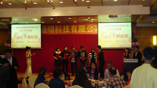 喜悅伴著汗水,成功伴著艱辛,遺憾激勵(lì)奮斗,我們不知不覺(jué)地走進(jìn)了2015年。在元宵佳節(jié)來(lái)臨之際,揚(yáng)光照明開(kāi)年晚宴在東莞會(huì)展酒店隆重舉行,揚(yáng)光照明總經(jīng)理李總,全國(guó)多個(gè)分公司負(fù)責(zé)人、全體員工及員工家屬共同出席。 美味的晚宴中伙伴們與家屬共同觀看了揚(yáng)光照明給大家?guī)?lái)的節(jié)目,節(jié)目?jī)?nèi)容精彩紛呈。