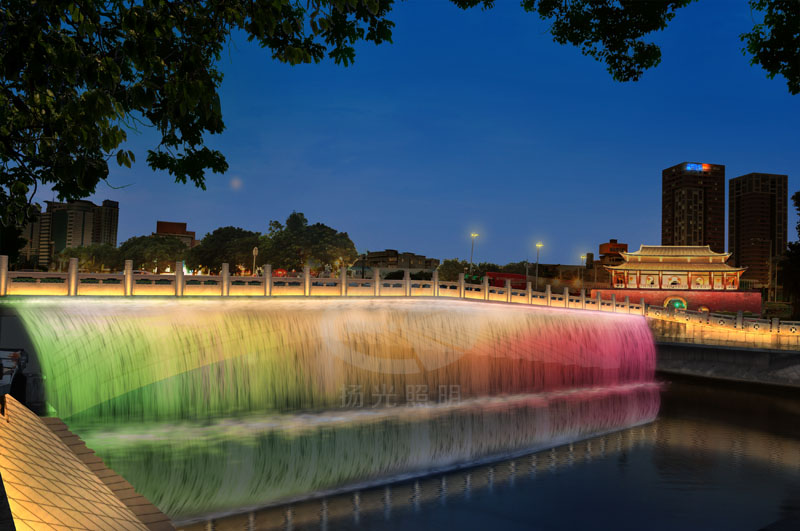 橋梁景觀亮化工程應在充分了解橋梁的特征、功能、風格、社會歷史背景地位、飾面材料和環(huán)境以及橋梁設計師創(chuàng)意和設計意圖的基礎上,確定合適的照明方式。采用多種照明設計手法,對橋體、橋墩、護欄進行精心的照明設計,力求不僅要體現橋梁的雄姿,產生美觀的照明效果,還要通過選擇先進、優(yōu)質的照明產品和現代的控制方式,使橋梁的景觀在燈光變幻中呈現出流光溢彩的詩意般的氛圍,創(chuàng)造出一個自然人文新景觀。