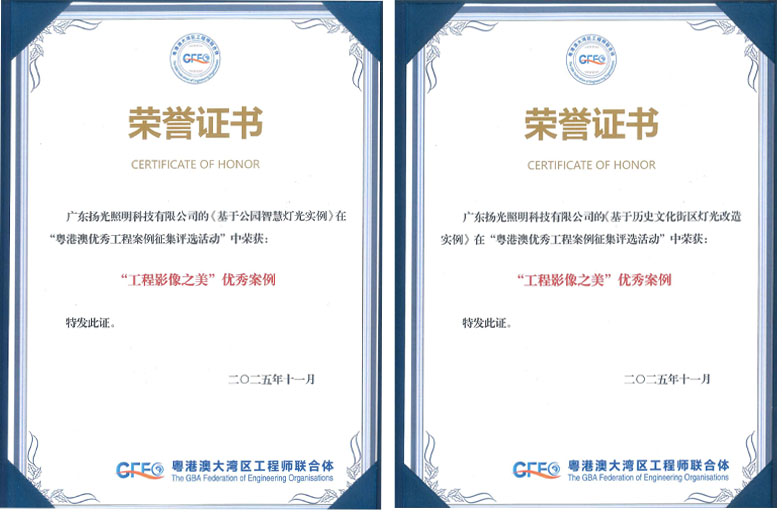 2025年11月30日,由中國(guó)工程師聯(lián)合體指導(dǎo),粵港澳大灣區(qū)工程師聯(lián)合體、中國(guó)科技發(fā)展基金會(huì)、香港工程院等單位聯(lián)合舉辦的第四界大灣區(qū)工程師論壇及大灣區(qū)優(yōu)秀工程頒獎(jiǎng)儀式在廣州華南理工大學(xué)國(guó)際校區(qū)隆重舉行。在此次評(píng)選中,揚(yáng)光照明憑借“東莞記憶首開(kāi)區(qū)歷史文化街區(qū)燈光工程項(xiàng)目”及“東莞科學(xué)公園智慧燈光項(xiàng)目”雙雙榮獲“工程影像之美”優(yōu)秀案例稱號(hào),彰顯企業(yè)在照明工程領(lǐng)域卓越的技術(shù)實(shí)力與美學(xué)追求。